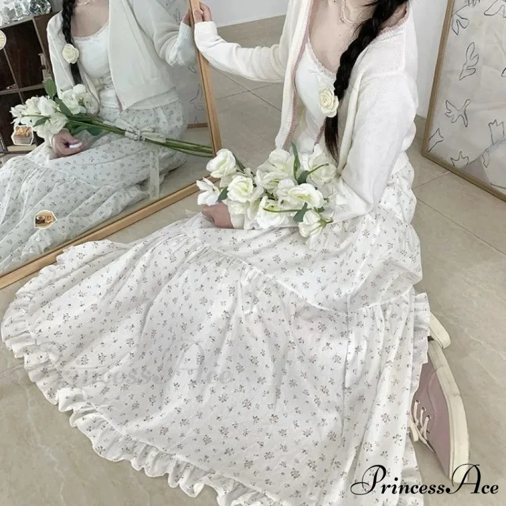 Delightful Blossom Fungus A-line Skirt Women Elevated Waist Gathered Cake Skirt