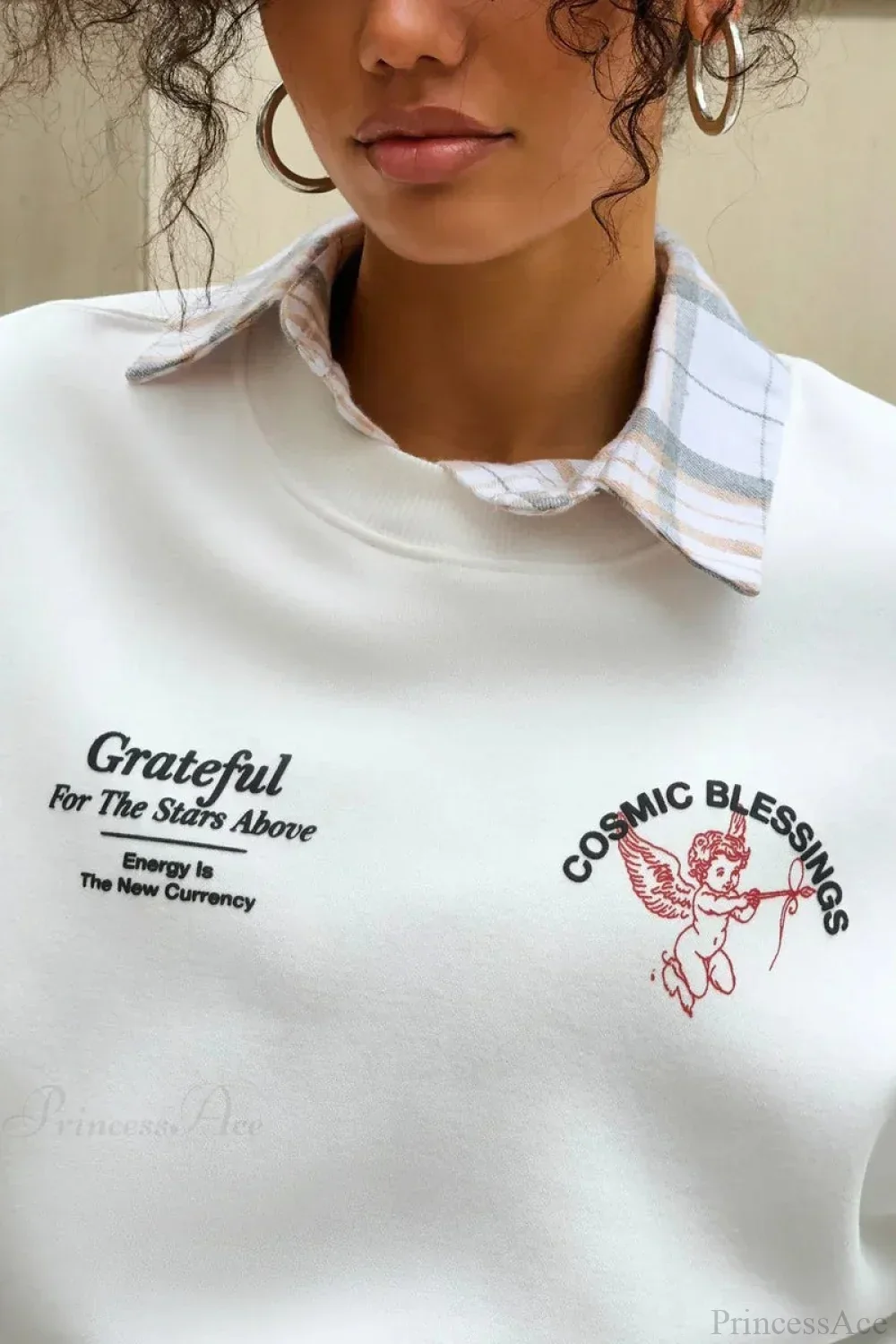 Solid Angel Print Thickened Crew Neck Sweatshirt