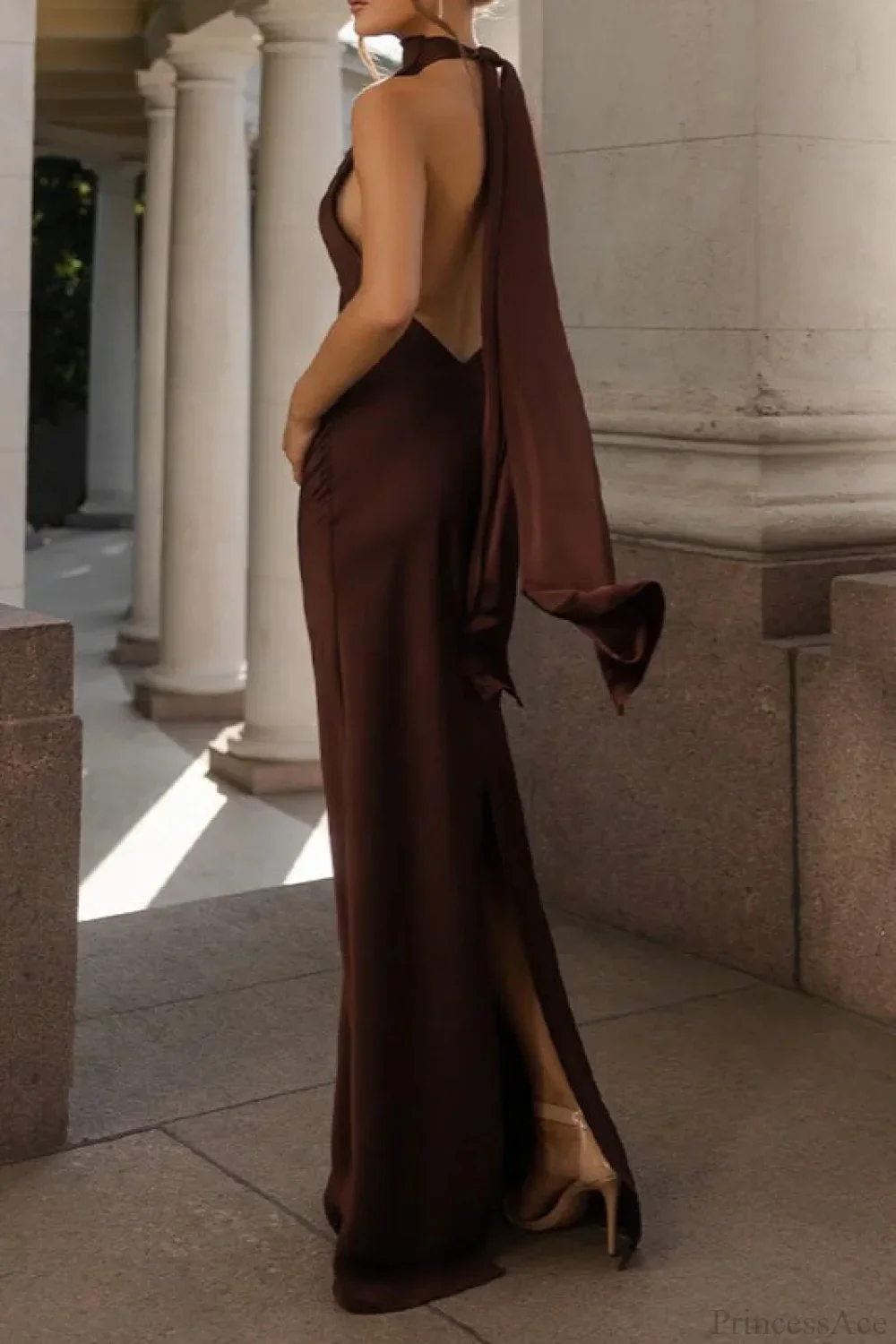 Vintage Solid Satin Backless Maxi Dress